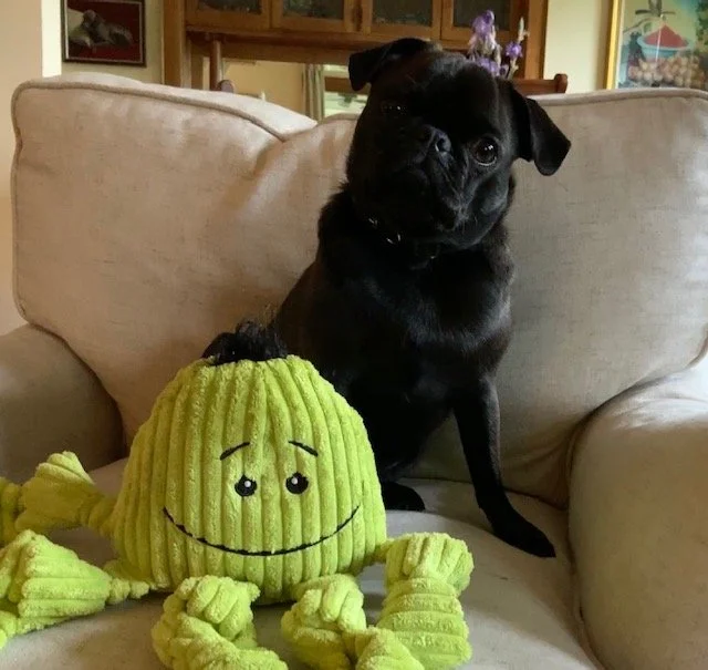 Daily Dig reader Jan W.’s 20-month-old black pug loves his favorite toy, “Shrektopus.” All but two of the squeakers are shot, but he still loves to play fetch. Dobby is currently taking beginners agility classes and is doing very well. Good boy, Dobby!
